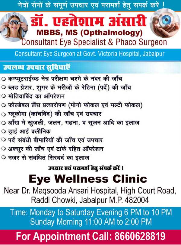 Dr. Ahtesham Ansari Eye Specialist Jabalpur, Eye Specialist near Adhartal, Jabalpur, Phaco Surgeon in Jabalpur
