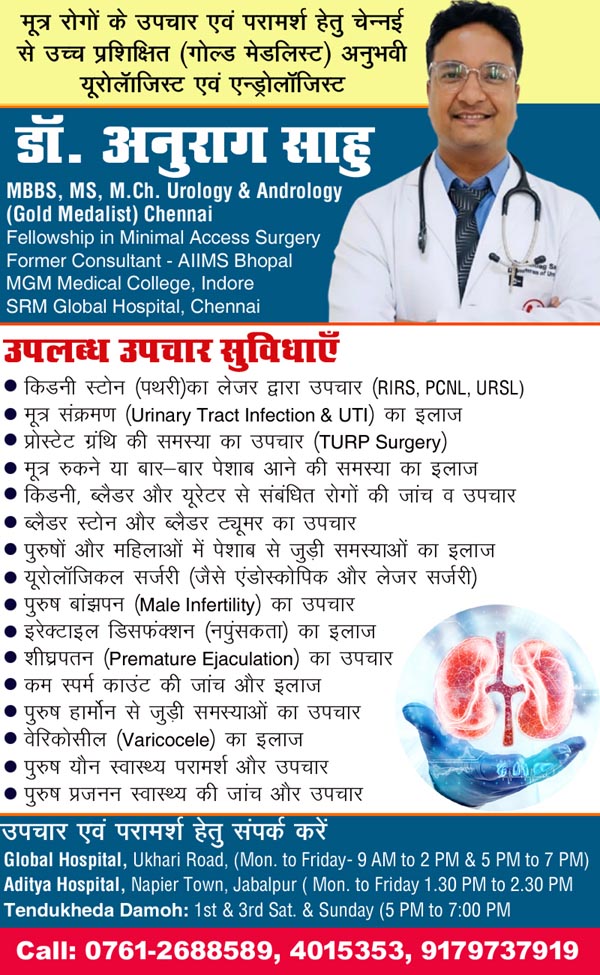 Dr. Anurag Sahu Urologist and Andrologist Jabalpur, Best Urologist in Jabalpur, Urosurgeon in Jabalpur