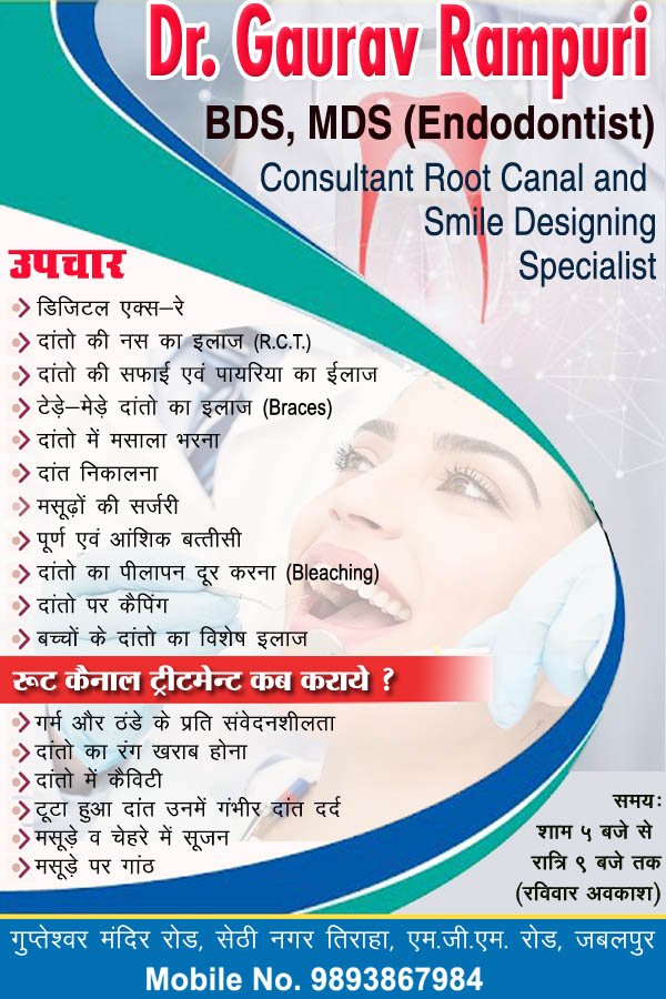Address: Root Canal and implant Center, Shop No. 10, Samdariya Complex, South Civil Line, Nr. 2nd Bridge Jabalpur, M.P. 482001