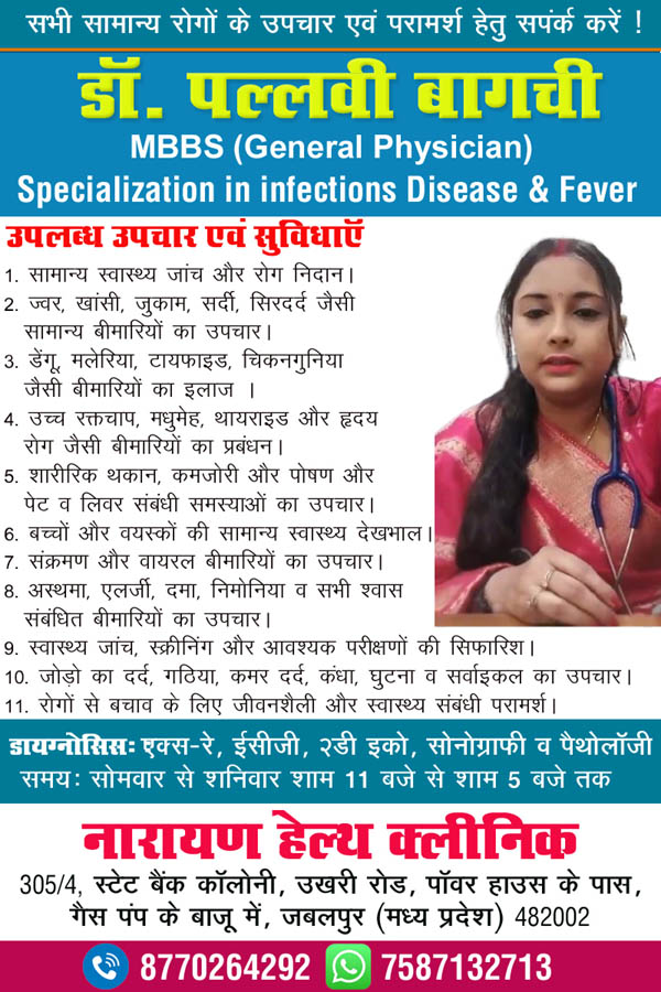 Address: 305/4, State Bank Colony, Ukhari Road, Near Power House, Beside Gas Pump, Jabalpur M.P.
