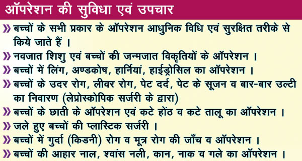 Special expertise and experience in the management of surgical diseases in newborns and children. Pediatric Gastroenterology, Paediatric Urology, Paediatric Minimal Access Surgery, Peadiatric Oncology, Neonatal Surgery.