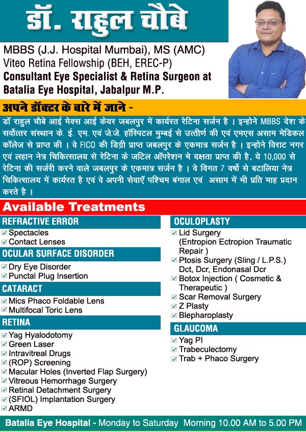 Dr. Rahul Choubey Eye Specialist Contact No. Best Retina Specialist in Jabalpur, Retina Surgeon in Jabalpur , Eye Specialist in Jabalpur