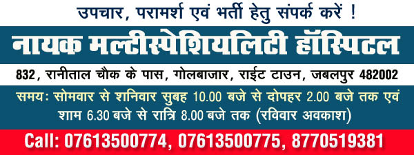 Address: Naik Multispeciality Hospital, 832, Golbazar, Near Ranital Chowk, Wright Town, Jabalpur M.P. 482002