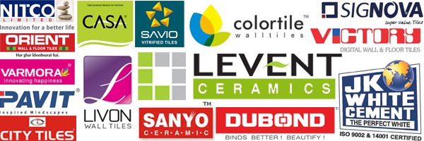 Nitco Tiles, Orient Tiles, Varmora Tiles, Pavit Tiles, City Tiles, Qutone Tiles, Casa Tiles, Savio Tiles, Livon Wall Tiles, Levent Tiles, Victory Tiles, Signova Tiles, BajajTiles, Sanyo Sanitoryware, Parryware Sanitoryware, Jaquar Sanitoryware, Dubond Adhesive, VIP Pipes and Pacos Pressure Pumps.