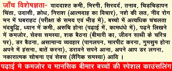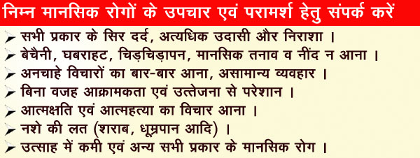 At Prime Mental Health Clinic, Madan Mahal Chowk, Jabalpur Monday to Saturday 1 PM to 3 PM