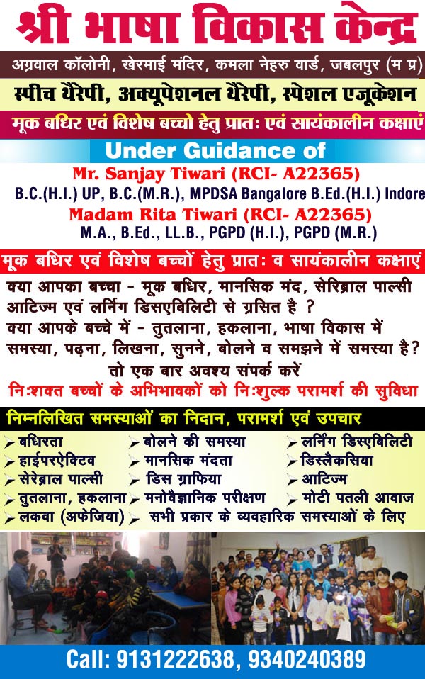 Speech Therapy, Special Child Education and Language Development Centre, Occupational Therapy center in Jabalpur