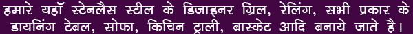 About, Shri Samarth Stainless Steel Railing Works: We made exclusive and decent Stainless Steel Grills and Railing, Mat and Glossy, All variety of Dining Table, Sofa Sets, Chair, Kitchen Trolley and Baskets, Metal Letter and Latest Furniture Etc..