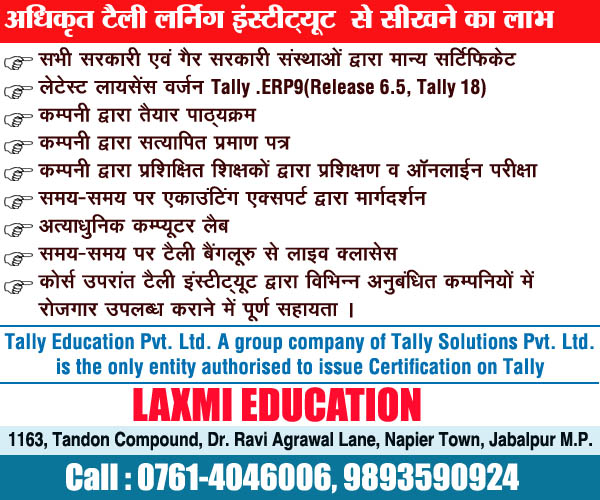 About, Tally Institute of Learning Laxmi Education:Tally Authorized Tally Training Institute in Jabalpur, Tally Authorised Learing Center in Jabalpur, Tally Authorised Center in Jabalpur
