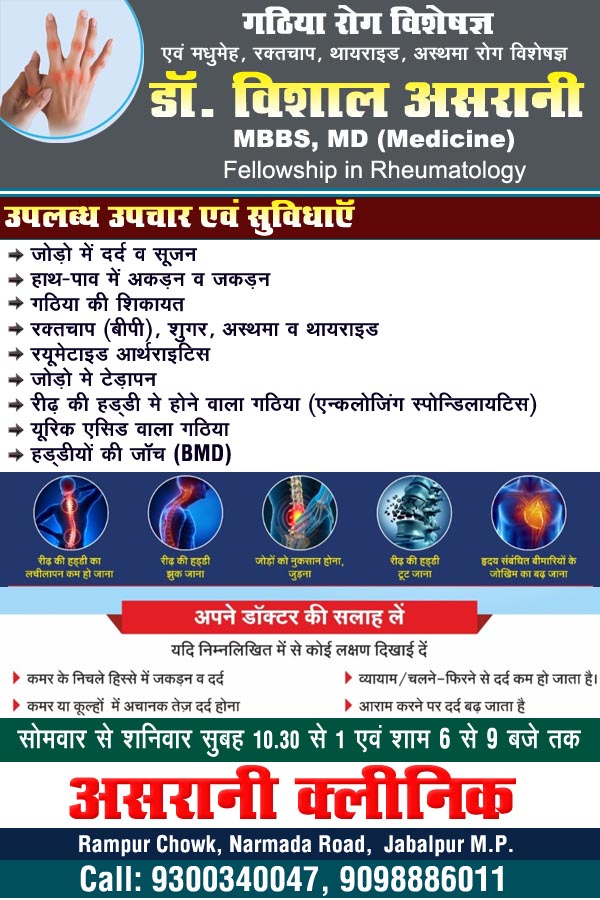 About, Dr. Vishal Asrani (Rheumatologist): Dr. Vishal Asrani MD Medicine Rheumatologist, Arthritis Specialist, Diabetes Specialist, thyroid Specialist in Jabalpur, Critical Care Specialist