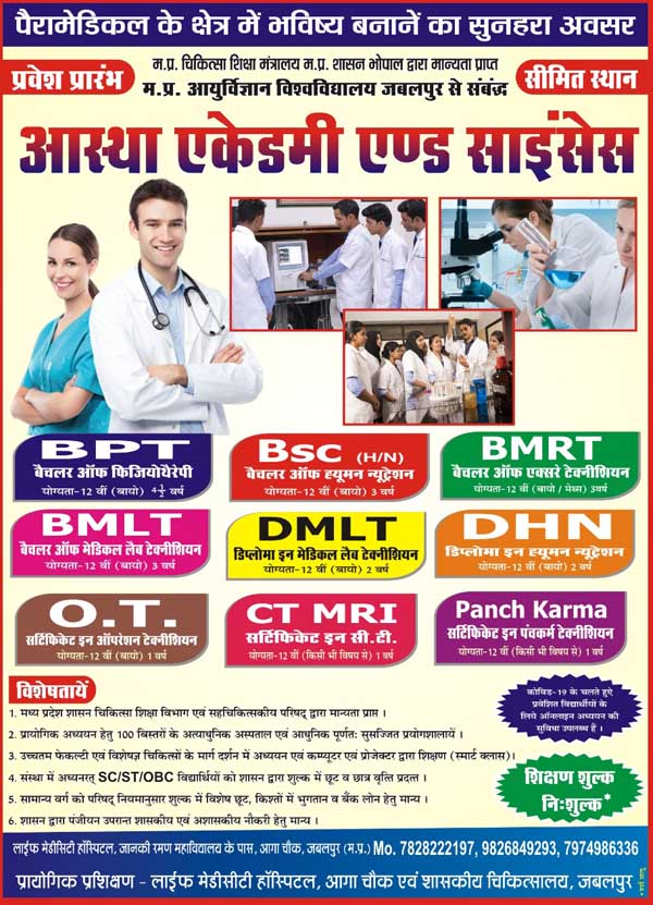 Paramedical College in jabalpur, DMLT in Jabalpur, BMLT in Jabalpur, BPT in Jabalpur, Paramedical Course in Jabalpur