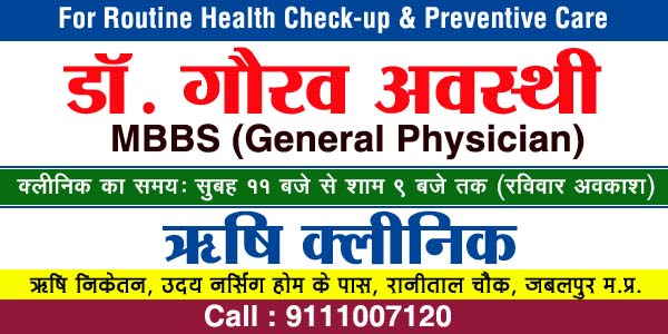 Address: Rishi Clinic, 993, Rishi Niketan, Ranital Chowk, Wright Town, Jabalpur M.P.