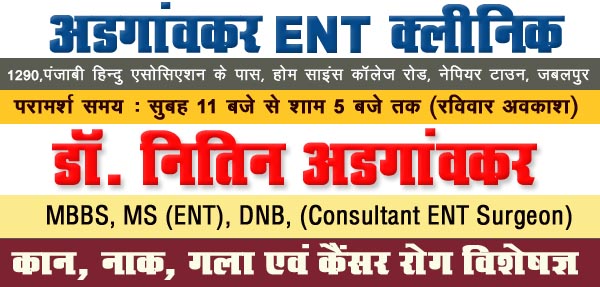 Adgaonkar ENT Clinic, 1290, Near Punjabi Hindu Association, Home Science College Road, Napier Town, Jabalpur M.P. |