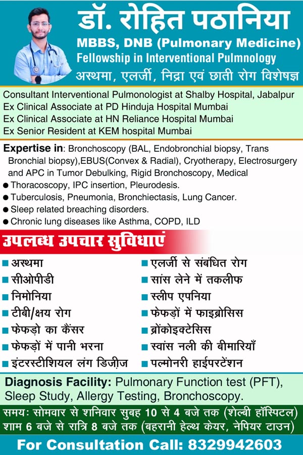 Dr. Rohit Pathania Chest Physician Jabalpur, Pulmonologist in Jabalpur, Interventional Pulmologist in Jabalpur, Chest specialist in Jablapur