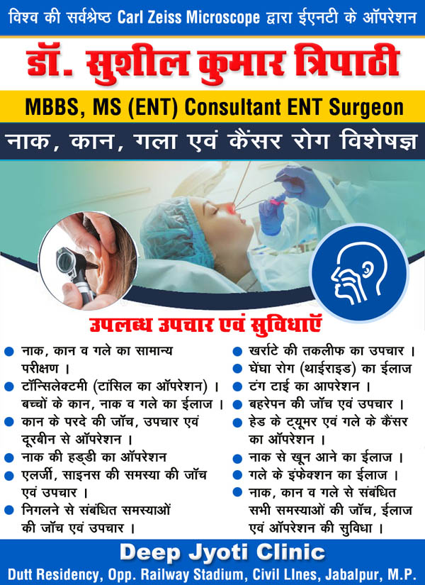 About, Dr. Sushil Kumar Tripathi (ENT Specialist):ENT Specialist in Civil Lines Jablapur, ENT Surgeon in Jabalpur, Best ENT doctor in Jabalpur , ENT specialist near Medical