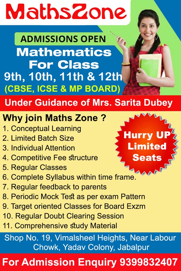Best Maths Classes Near Yadav Colony, Maths Classes in Jabalpur, Maths Classes for 9th to 12th CBSE, Maths Classes for IIT-JEE