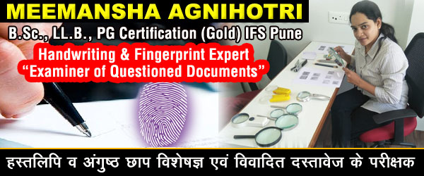 About, Meemansha Agnihotri (Handwriting and Fingerprints Expert):Meemansha Agnihotri Fingerprint Expert in jabalpur MP, Handwriting Expert in Jabalpur MP India, Examiner of Questioned Documents