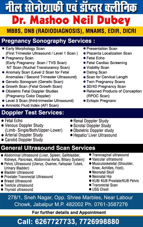 Neil Diagnostic Jabalpur, Dr. Mashoo Dubey Radiologist, Lady Radiologist in Jabalpur, Sonography center in Jabalpur, Diagnostic Center Jbp