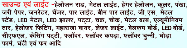 Tent Shops in jabalpur, Tent Material Manufacturer in jabalpur, Tent Material Supplier in jabalpur, Tent items wholesaler in jabalpur, Tent light supplier, Tent House items in jabalpur, Tent Dealer in jabalpur, LED Light Dealers, Mandap Cloth Wholesaler and suppliers, Decorative Light Dealers, Tent Accessory Dealers, Tent Cloth Wholesalers, Tent Manufacturers, Decorative Light Fitting Dealers, Imported Tent Dealers, Tent Cloth Manufacturers,