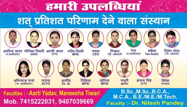 Address: Pandey Classes, D.N.Jain Complex, Beside Azad Palace, Malviya Chowk, Jabalpur M.P.